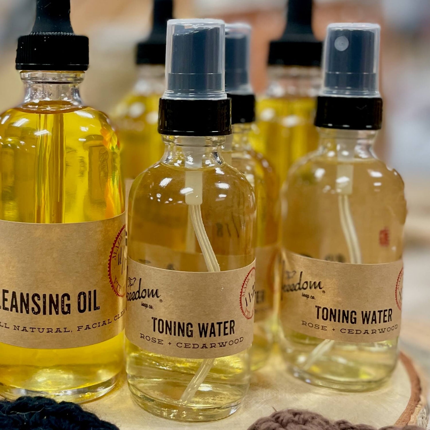 Our Rose + Cedarwood Toning Water bridges the gap between cleansing and moisturizing, helping your skin stay hydrated, calm, and ready to absorb nutrients.