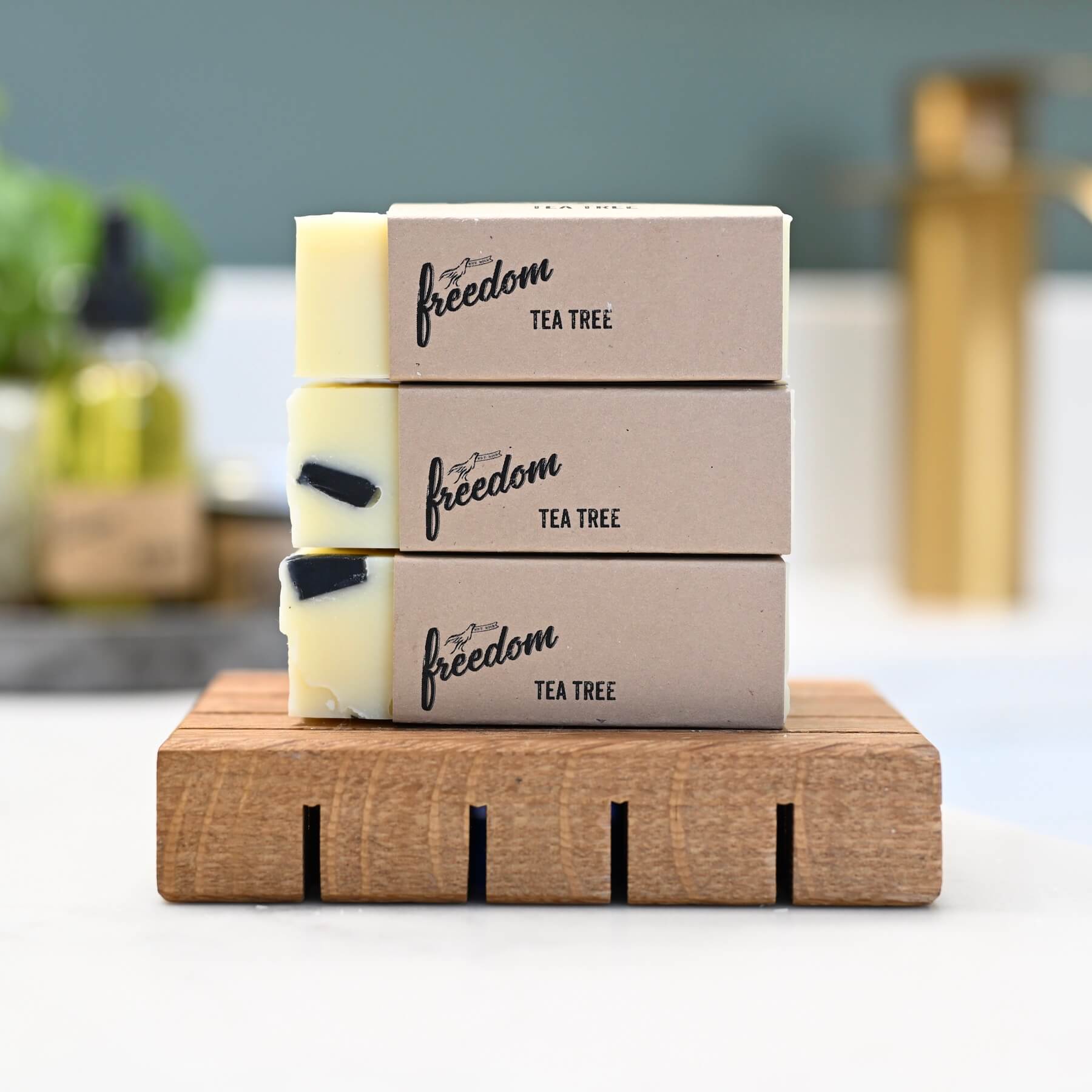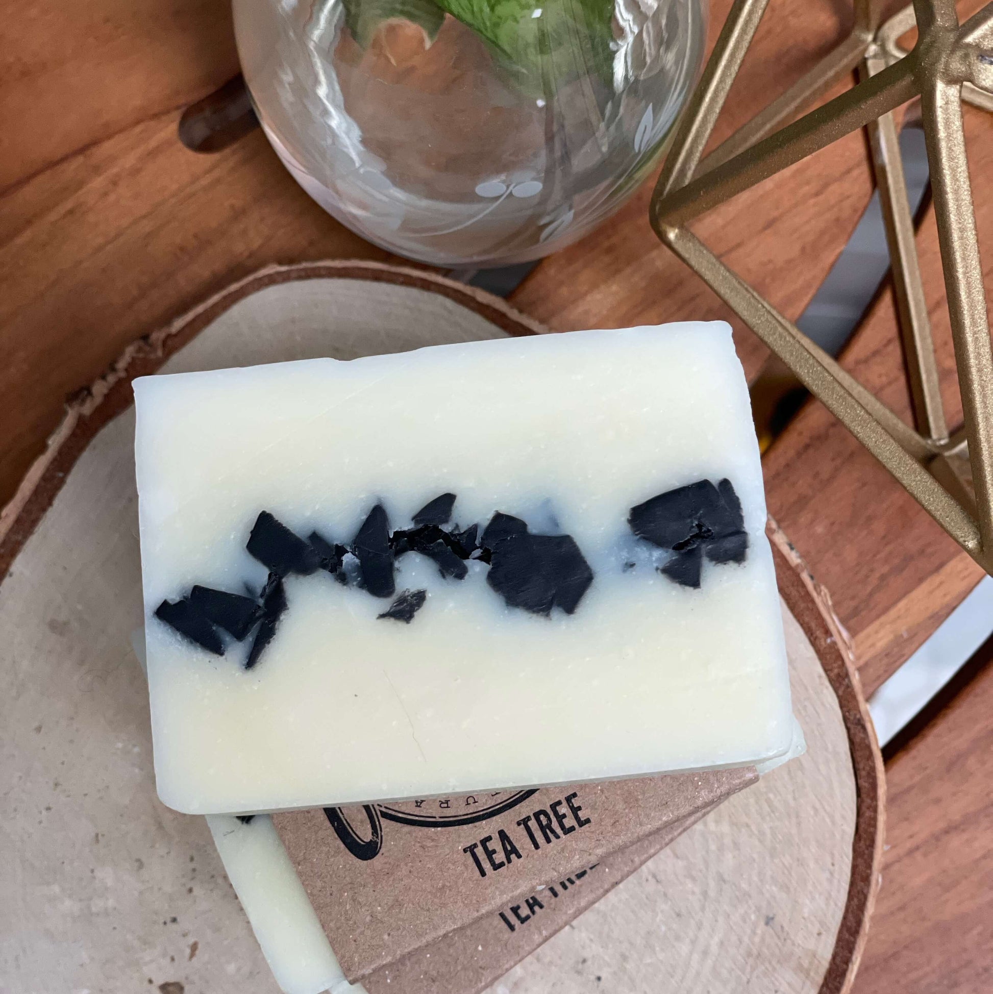 Our Tea Tree Bar combines the purifying strength of tea tree essential oil with the detoxifying benefits of activated charcoal. Together, they help draw out impurities, balance oil, and support healthy, clear skin.